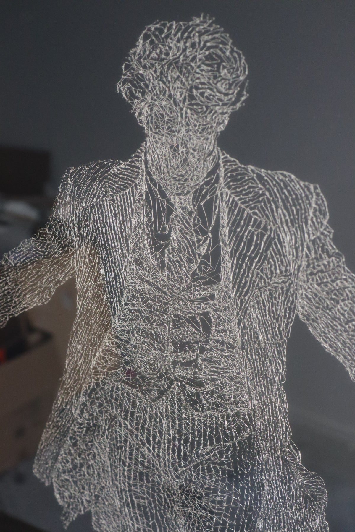 String Art is an extremely time-consuming process and requires the utmost focus. The artist begins by mapping out the selected reference image that is dissected into squares, then once a canvas size has been selected, this mapping process is upscaled onto the wooden canvas and squares are marked with an equal ratio to the ones on the reference image.